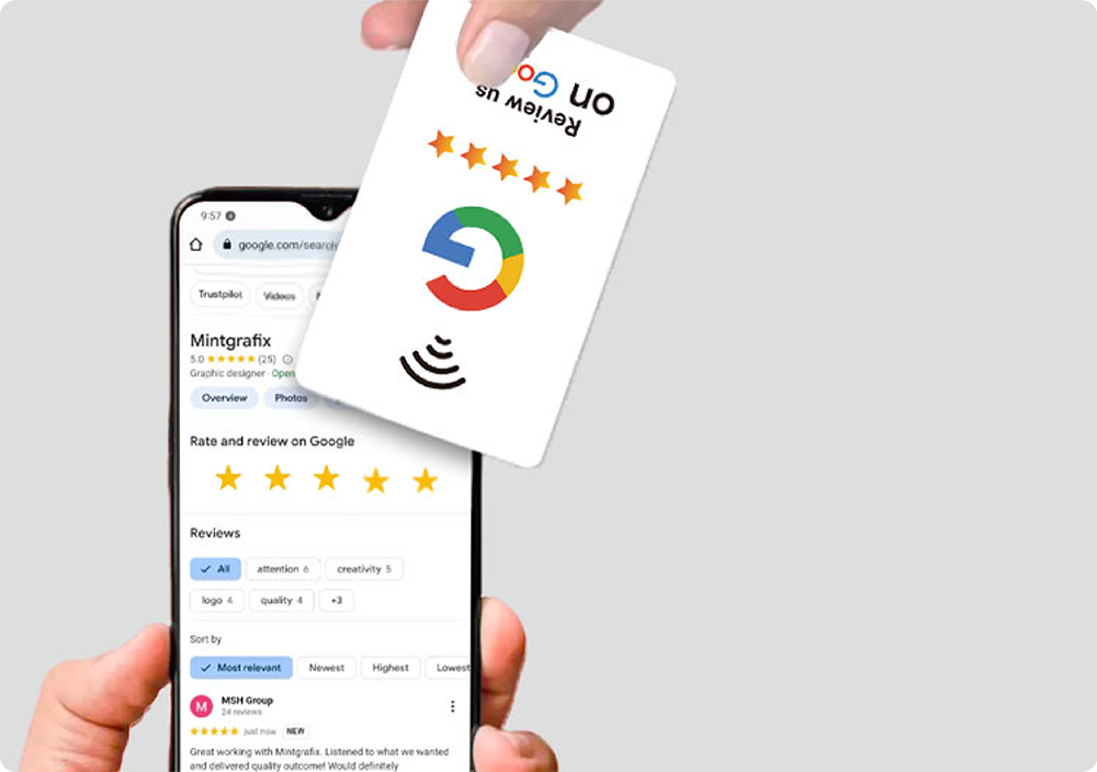 Encourage instant customer reviews on Google with a simple tap. These NFC cards make it easy for users to access your business’s review page, improving your online reputation and visibility.
